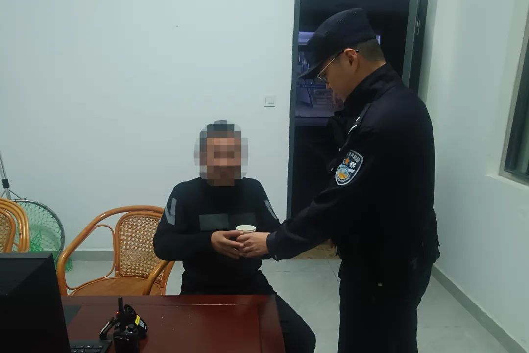 夜间寒气袭人,男子冻得瑟瑟发抖,民警赶忙让男子坐上警车将其带回派出所,并给他端来一杯热茶。男子浅饮了两口热茶,轻轻地呼出了一口气,这才暖和过来,开始向民警介绍自己的情况。