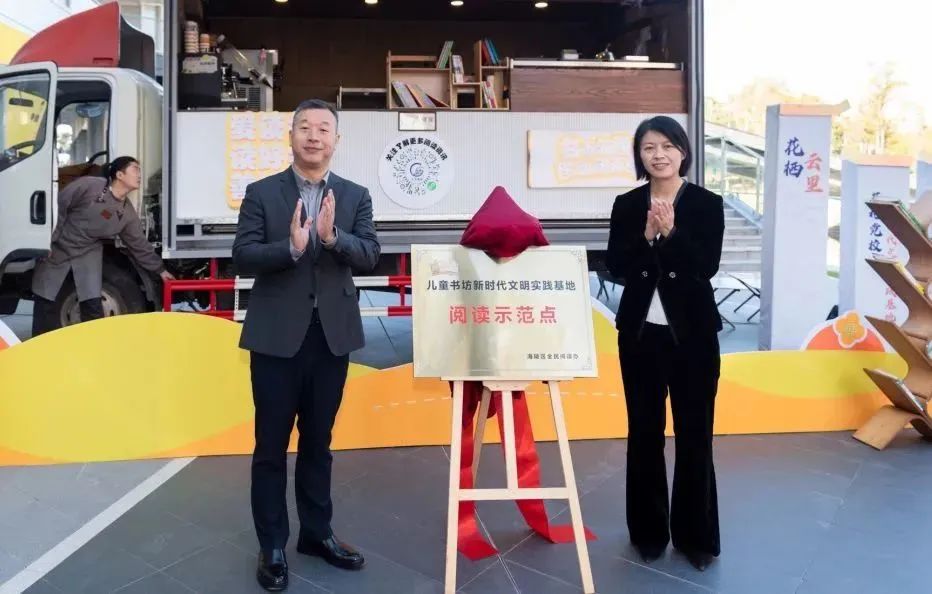 泰州市委宣传部副部长、市新闻出版局(版权局)局长、市文联党组书记周焕祥,海陵区委常委、宣传部部长方晓玫为城市儿童书坊新时代文明实践基地阅读示范点揭牌并启动阅读车。