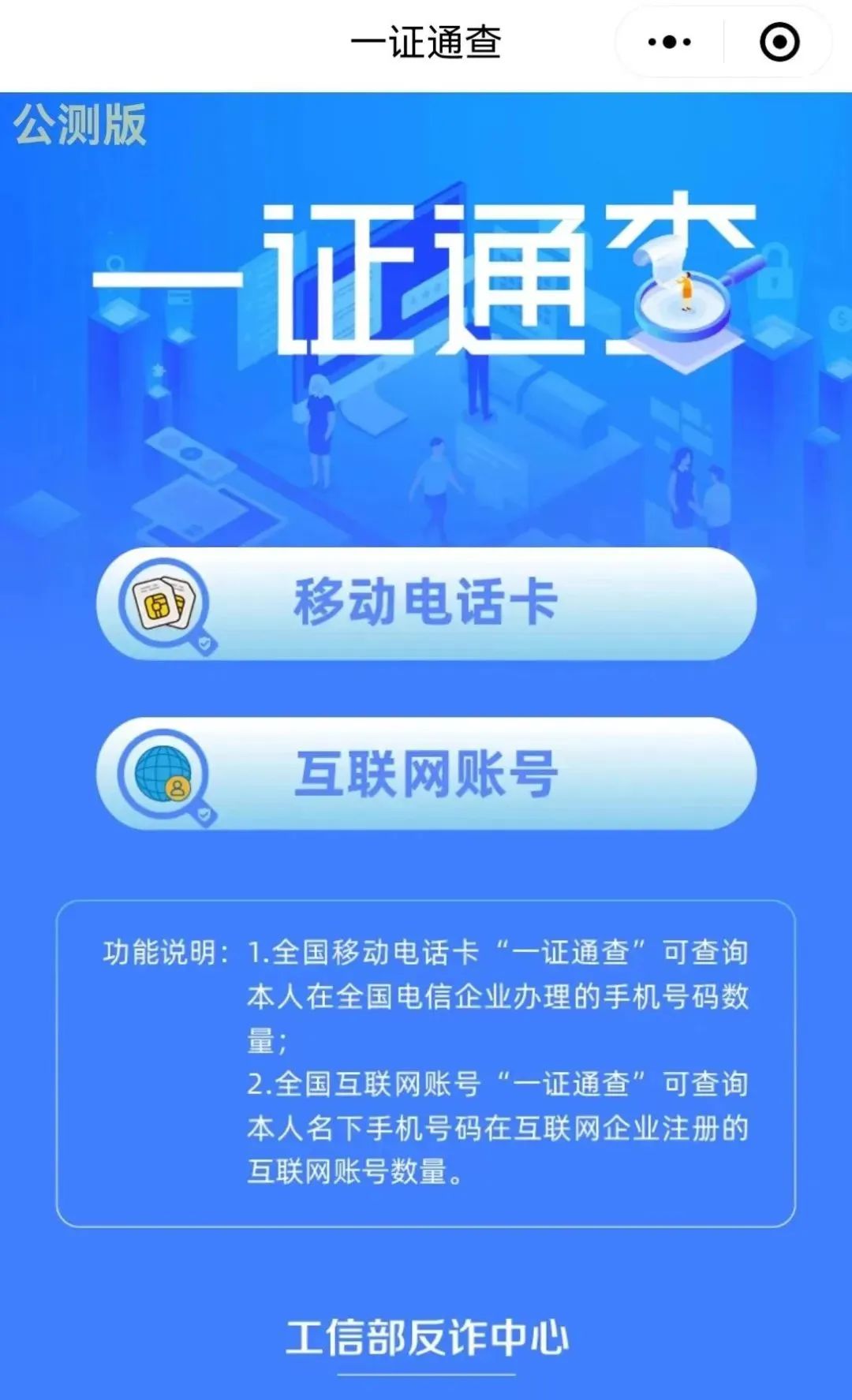 查询方式 用户可以通过工业和信息化部政务微信号“工信微报”和“工信部反诈专班” 微信公众号,以及支付宝“一证通查”小程序等方式进入查询入口。