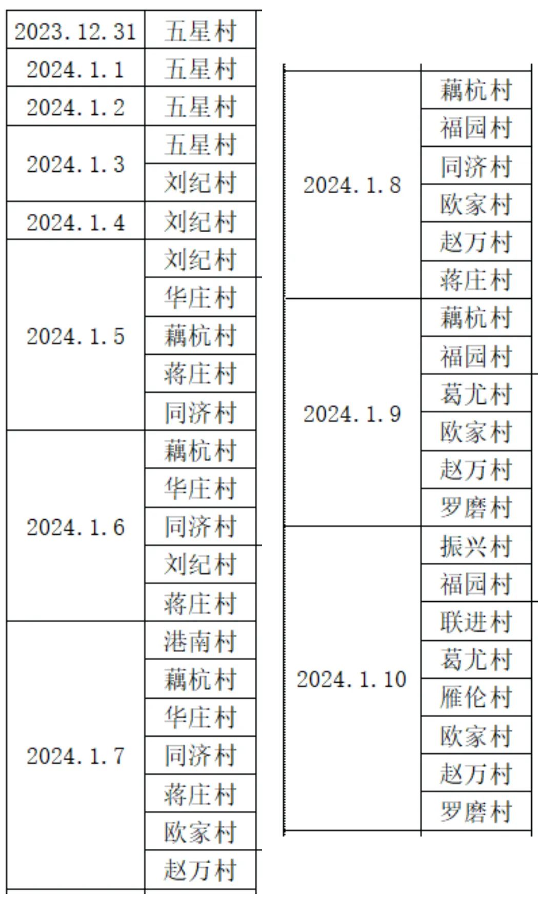 以下是勘测队施工勘测作业表,如有特殊情况,临时调整。