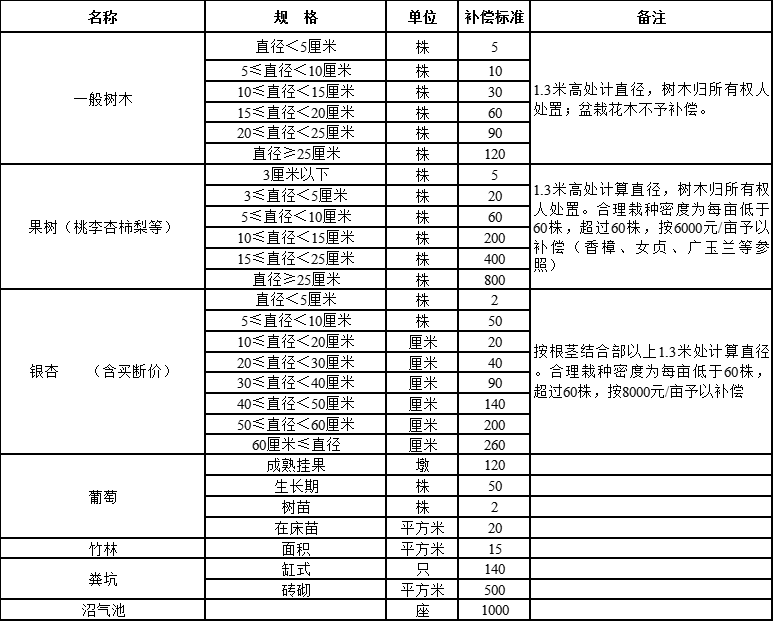 附件:泰州市征地地上附着物和青苗等补偿标准