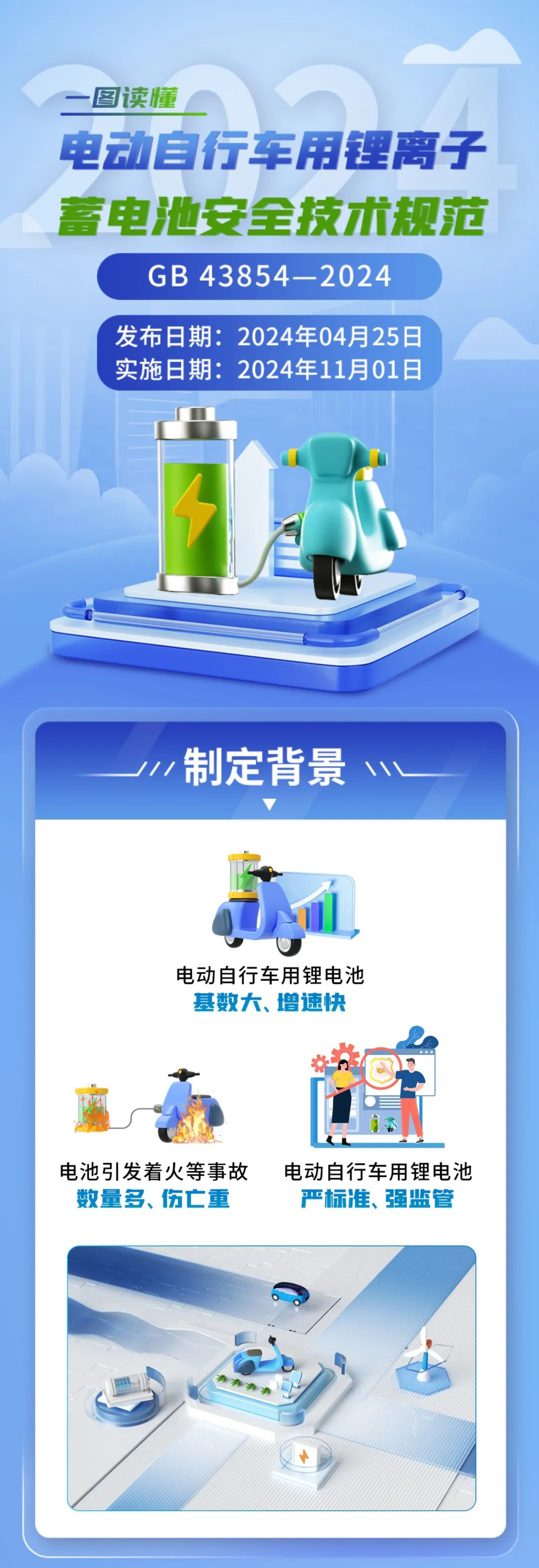为进一步提升电动自行车锂离子蓄电池质量安全水平,促进行业安全健康发展,由工业和信息化部负责组织起草的《电动自行车用锂离子蓄电池安全技术规范》(GB 43854—2024,以下简称《技术规范》)强制性国家标准近日由国家市场监管总局(国家标准委)正式发布。