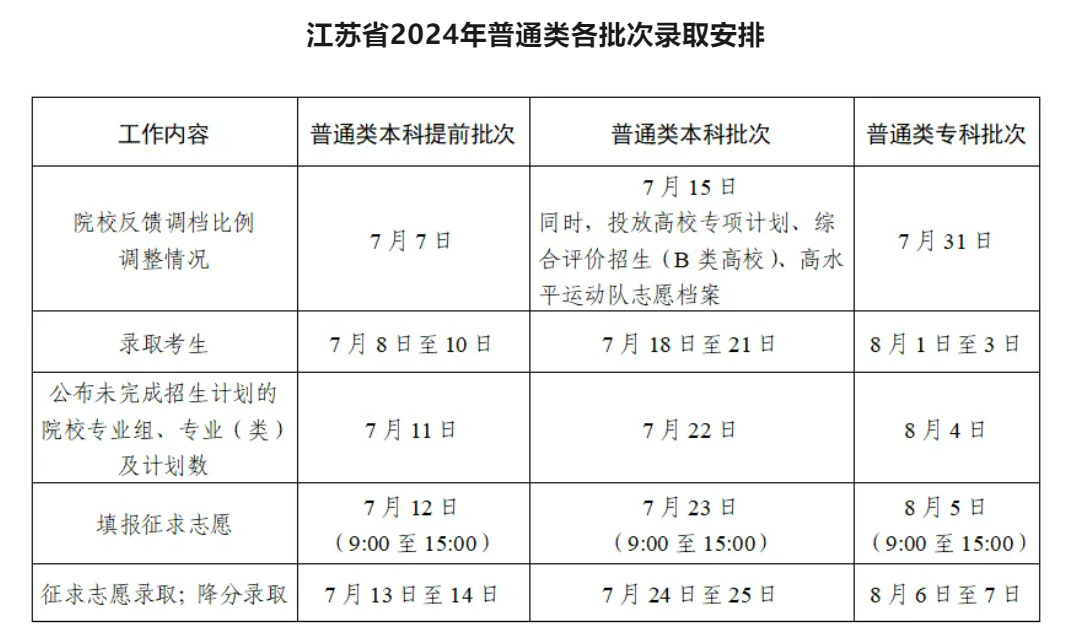 [聚焦民生] 江苏省2024年普通高校招生录取批次及时间安排