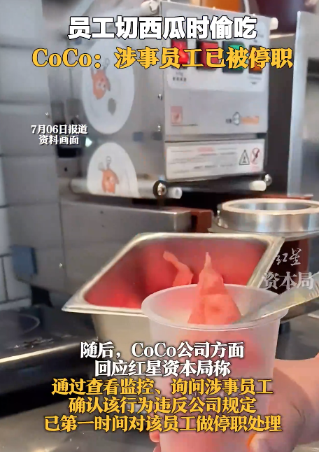 近日,CoCo都可被曝员工切西瓜时偷吃,引发热议。
