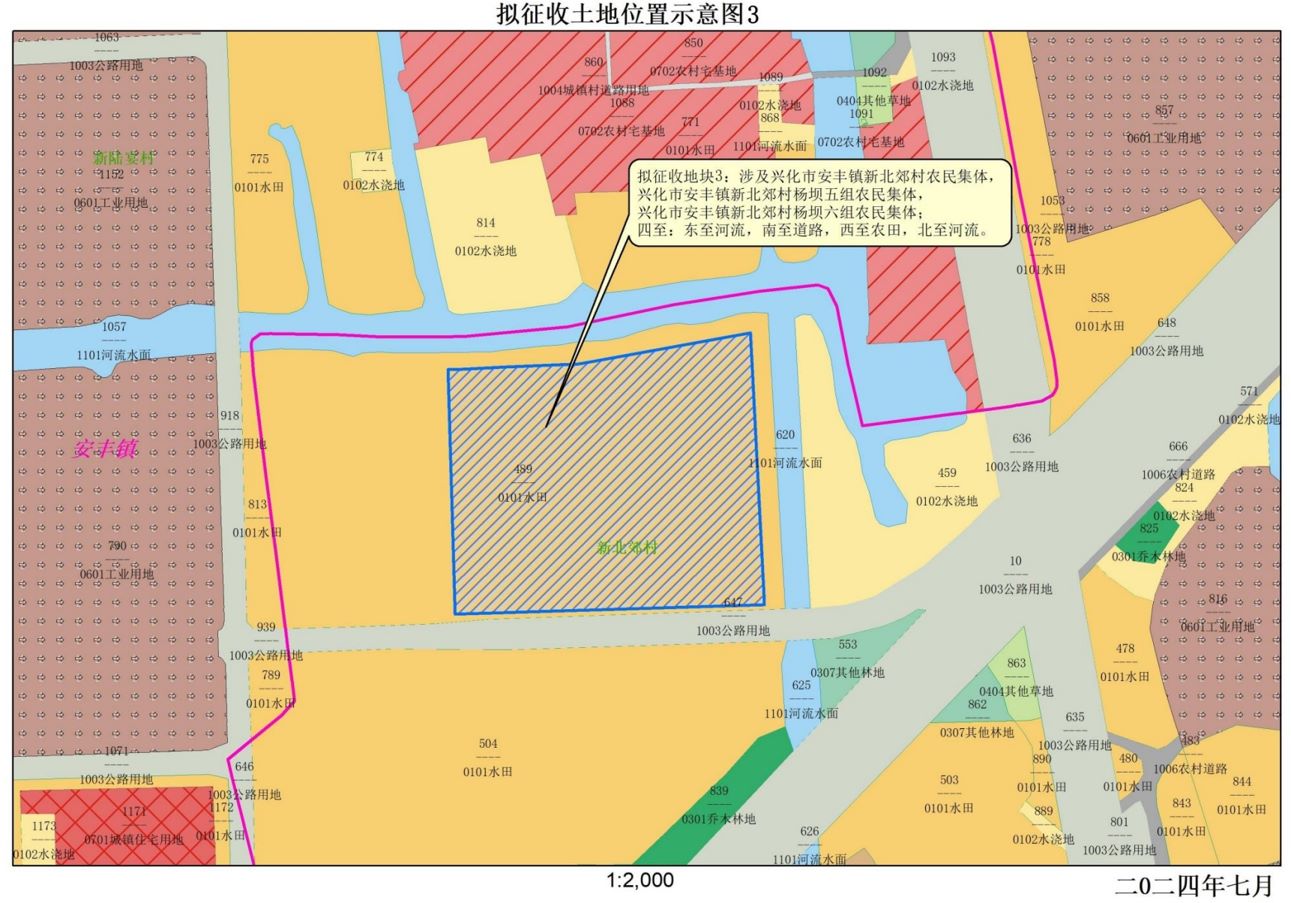 拟征收地块3:位于安丰镇新北郊村集体、杨坝五组、杨坝六组范围内。