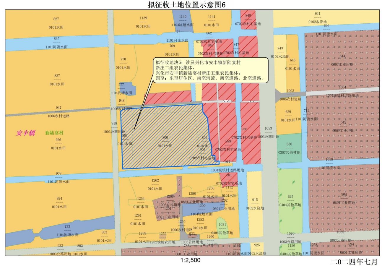 拟征收地块6:位于安丰镇新陆宴村新庄二组、新庄五组范围内。