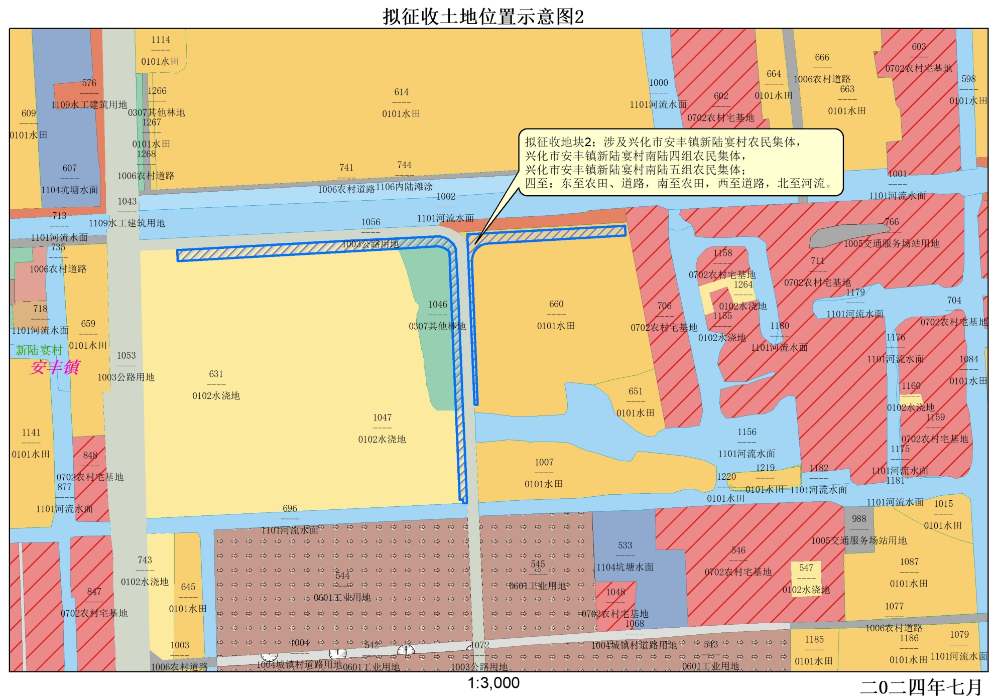 拟征收地块2:位于安丰镇新陆宴村集体、南陆四组、南陆五组范围内。