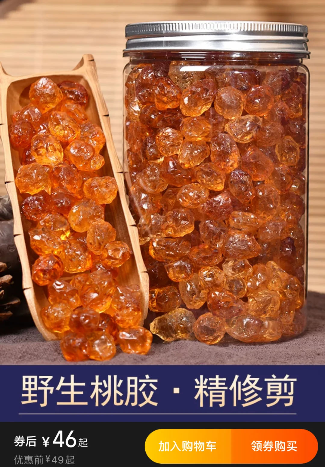 每到夏天,吃桃胶的人特别多,不少人都认为它有美容养颜的功效。在购物网站上,也能看到网店售卖桃胶。晒干成固体的桃胶价格每斤二三十元到百元不等。