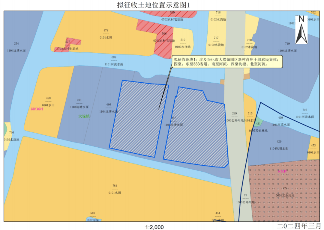 拟征收地块1:位于大垛镇园区新村肖庄十组范围内。