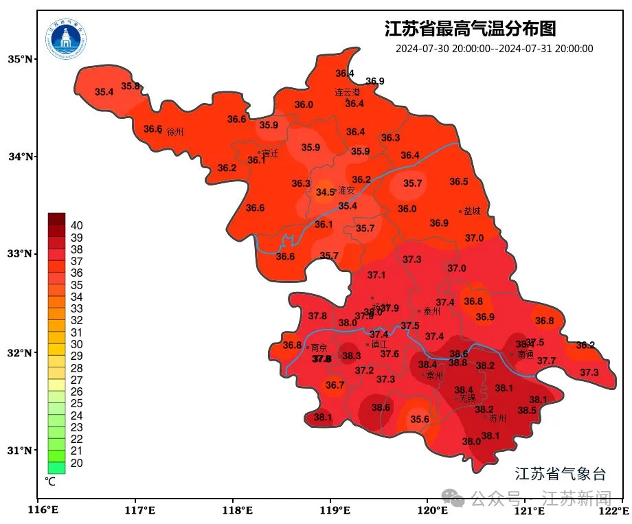最高江阴市38.8℃