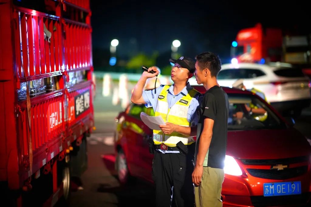 泰兴市局实行“集中抽查、交叉互查、机动巡查”夜查模式,重拳打击酒驾醉驾、“飙车炸街”、“三超一疲劳”、携带违禁品、管制刀具等违法行为,同步对交通参与人进行交通安全宣传教育,持续为群众平安出行营造良好的交通环境。