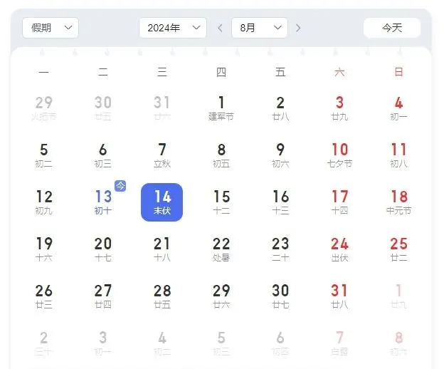 今天(8月14日) 正式进入末伏