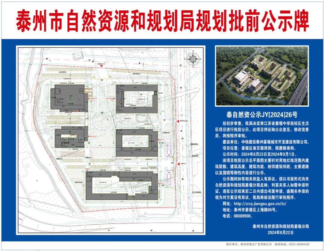 就在近日,江苏省姜堰中学西校区生活区规划方案批前公示出炉,拟建5幢大楼,主要包括教师公寓、公寓、饮食中心、学生宿舍。