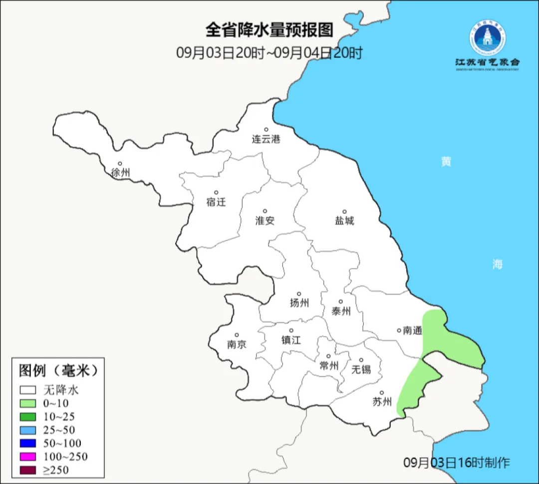 本省东南部地区多云到阴有分散性阵雨或雷雨,其他地区多云到晴。最高温度:沿江和苏南地区34~35℃,其他地区31℃左右;最低温度:本省东北部地区19~20℃,苏南地区24℃左右,其他地区22℃左右。全省偏东风4级左右。