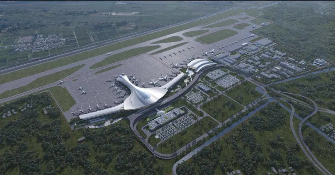 T2航站楼作为整个机场的标志性建筑,立意发源于运河文化,建筑造型舒展好似仙鹤,营造出“腰缠十万贯、骑鹤上扬州”的文学浪漫,又能应和泰州凤凰展翅的美誉。从效果图上看,T2航站楼造型像一只头西尾东的凤凰