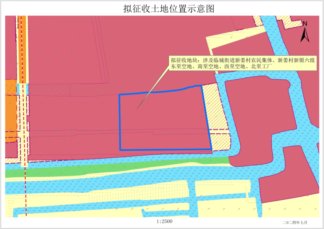本次拟征收土地位于临城街道新姜村集体、新银六组范围内。拟征收土地位置详见附图。