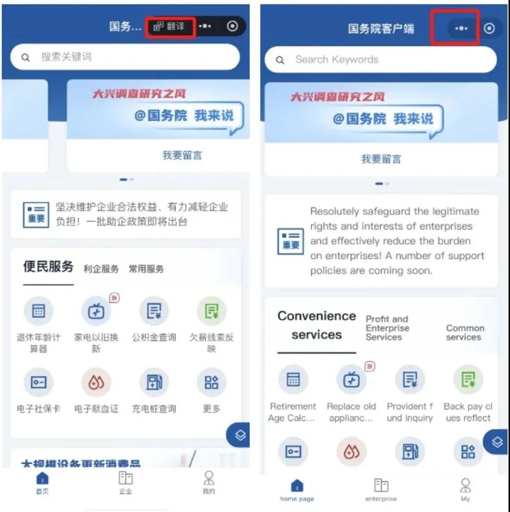 具体来看,在微信小程序右上角新增翻译按钮,点击可一键翻译当前页面文字,便于用户快速理解和使用功能。如需取消翻译,或切换翻译语言,可以点击“...”进行操作。
