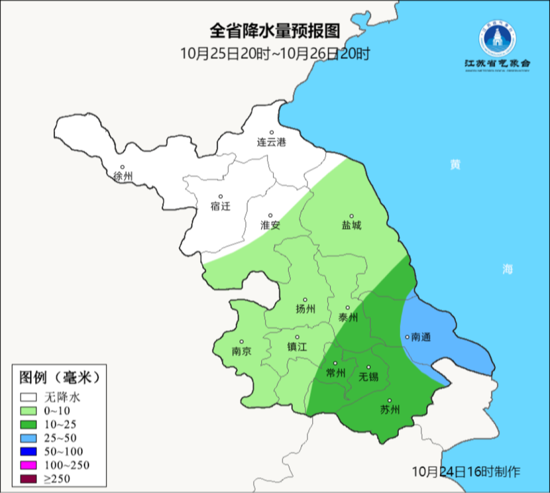 今天夜里起 江苏全省将迎来一次降水过程 本次降雨 主要在今天夜里到明天 降雨区域主要在江苏省东南部 局部将有大雨