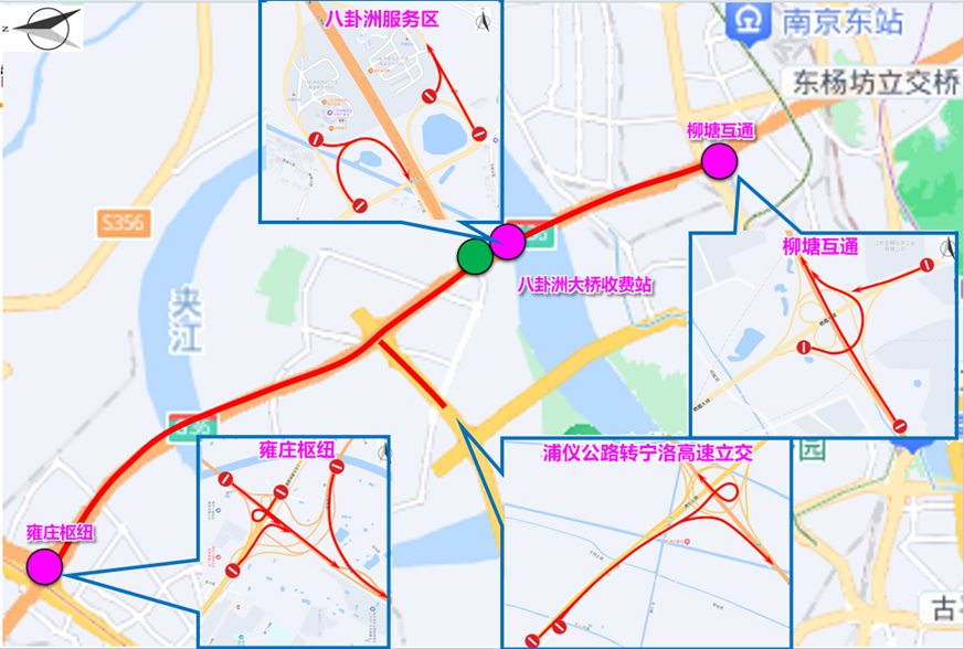 (3)临时关闭八卦洲长江大桥(南京二桥)主线收费站及八卦洲服务区收费站入口。