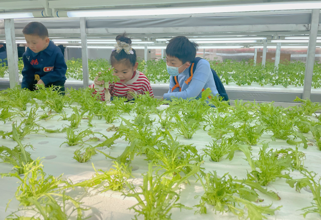 不用土壤怎么种出绿油油的蔬菜?老师带领大家走进无土栽培劳动教育,学习几样劳动“黑科技”。智能植物工厂多层种植,连接物联网实现智能管控水肥、智能补光;鱼菜共生系统自给自足,不断循环,既环保又能可持续种养殖。